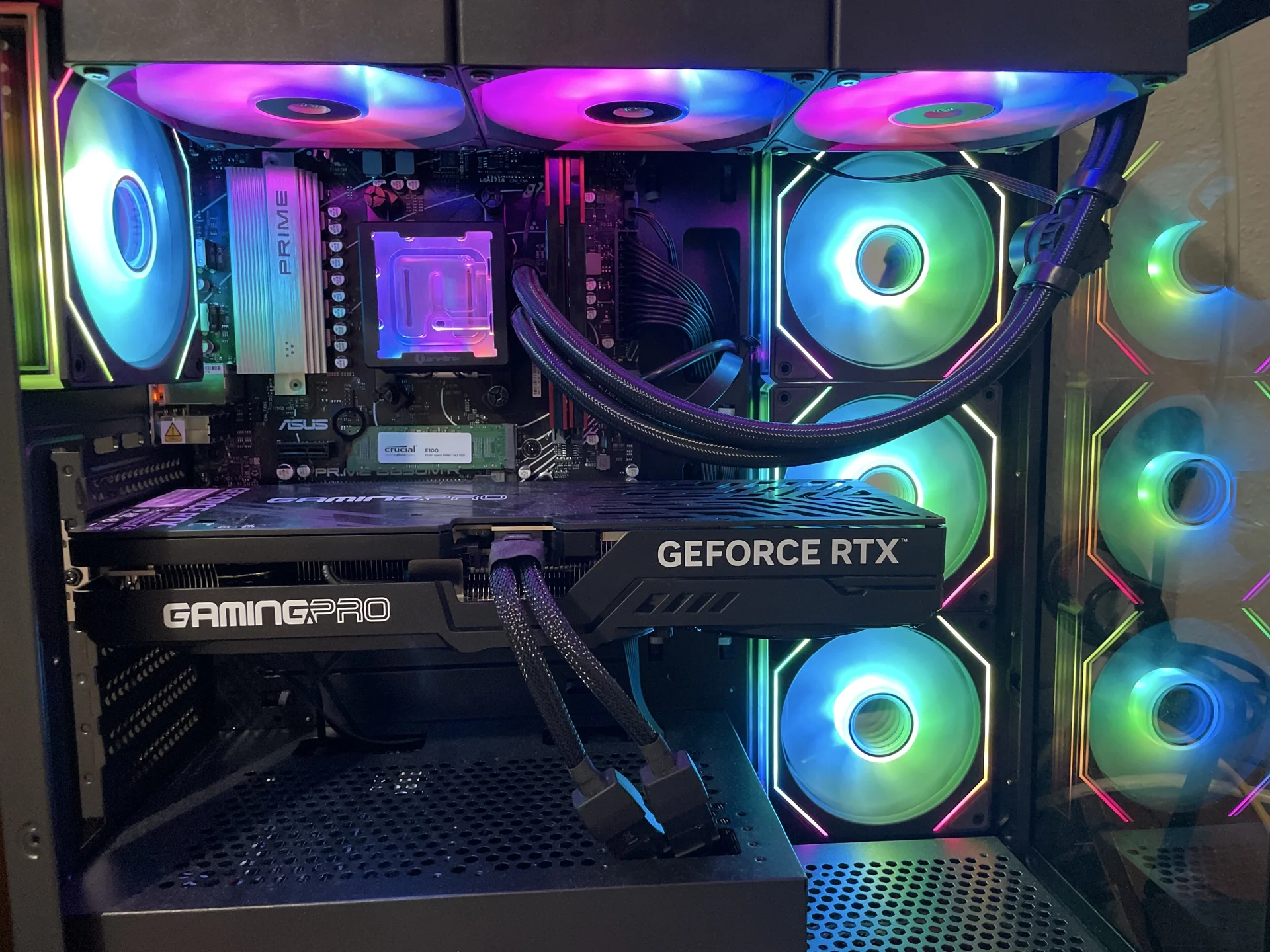 Kasa yan cam yansıma için söktüm. Yandaki fanlar intake üst ve arka fanlar egzoz olacak şekilde. Ekran kartı fanlarında sorun yok gibi 3ü de dönüyor 60+ olunca. 16 pin bağlatısında ekran kartına gelen kısımda sorun yok gibi psu için arkayı açıp kontrol ederim mi?