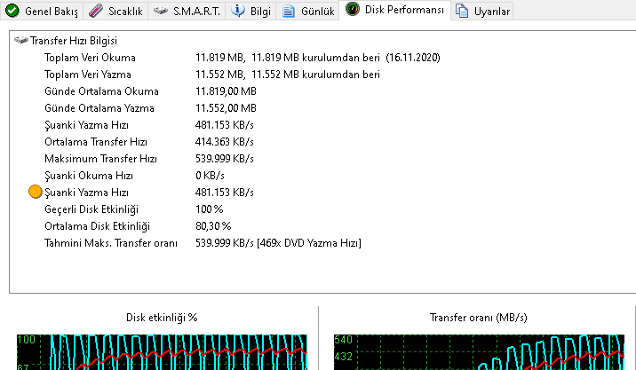 Dosya aktarımı sırasında HDD Sentinel ile aktarım hızını kontrol ettim. Vaat ettiği hızlara ulaşıyor diyebiliriz.