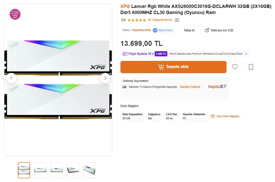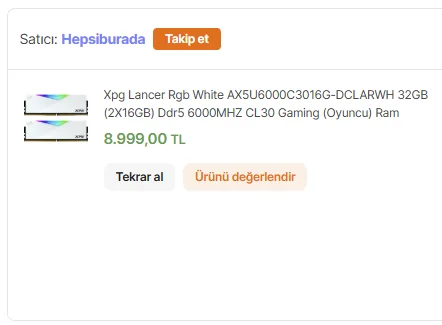 Yiarz08 yazmış: fiyatların uçtuğu dönemde patriot viper venom 6000mhz 16GB CL30 ram aldım 4650tl ye sizce beklemelimiydim hata mı ettim? Devamı için tıklayın... Hocam iyiki aldınız en iyi haziran 2026'ya kadar böyle durum maalesef