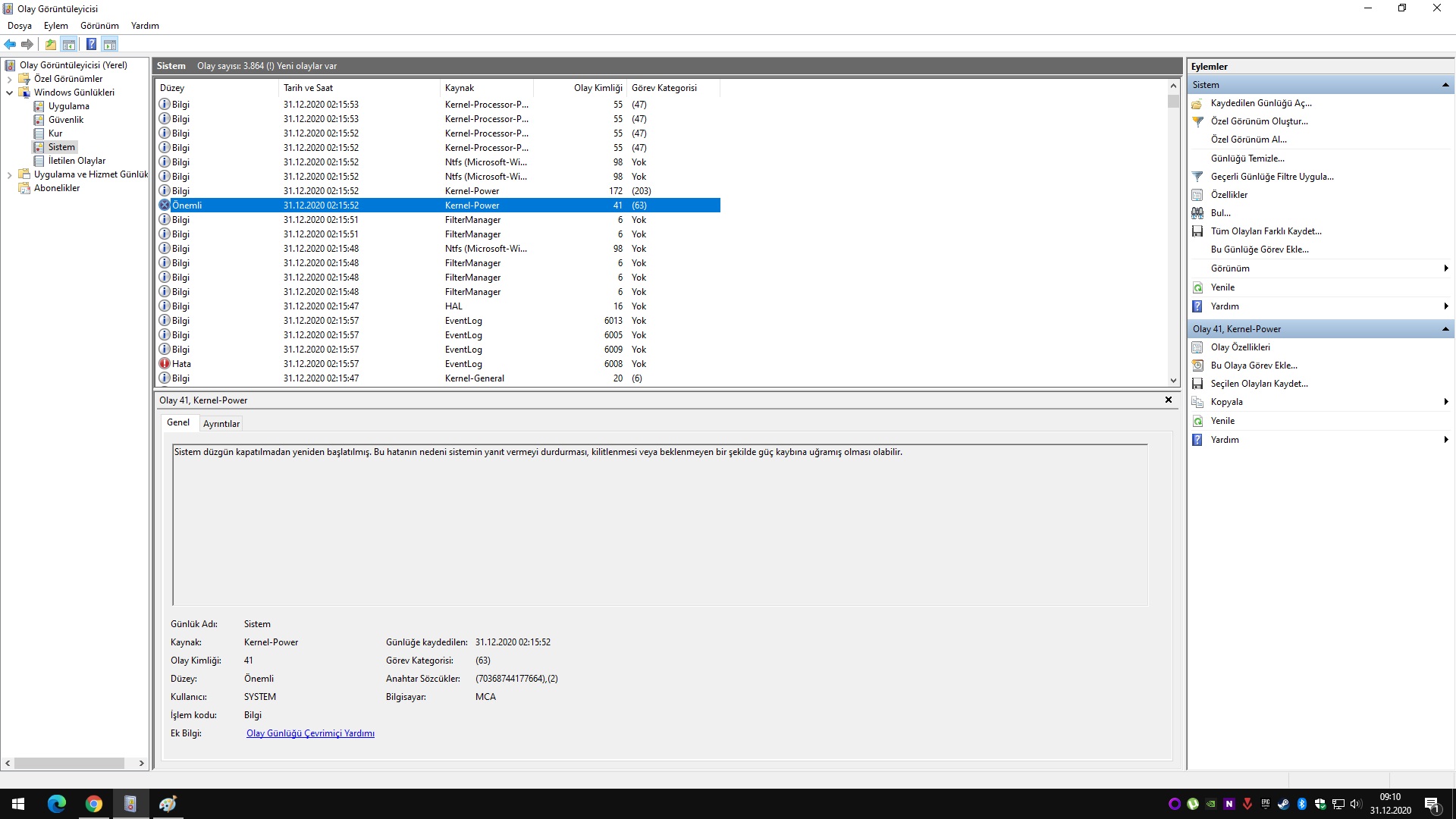 Ram testi yapınca OCCT kilitleniyor, Power testinde Crash hatası alıyorum. 2 power denedim ikisinde de aynı problem(biri sıfır power). İmkan olmadığı için ram değiştirip test etme fırsatım olmadı. Olay görüntüleyicide karşılaştığım hatalar var internette araştırdım bulamadım bilgisi olan yardımcı olabilir mi ? Teşekkürler