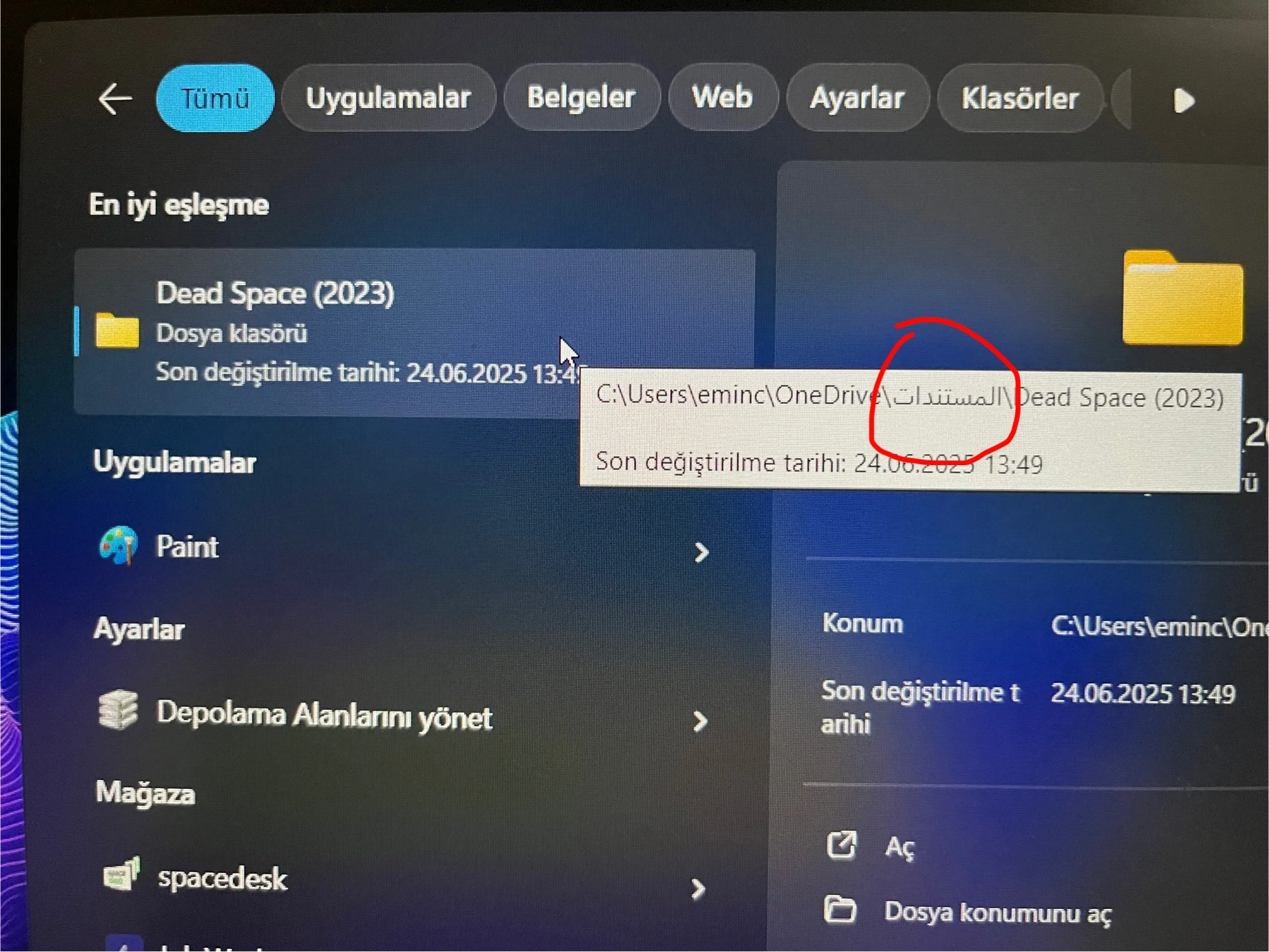 (Fotoğrafta dosya konumunda arap alfabesi ile bişeyler yazıyor)