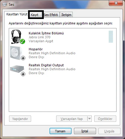 5-Oradan seçmek istediğin mikrofona sağ tık yapıp "etkinleştir" e tıkla.