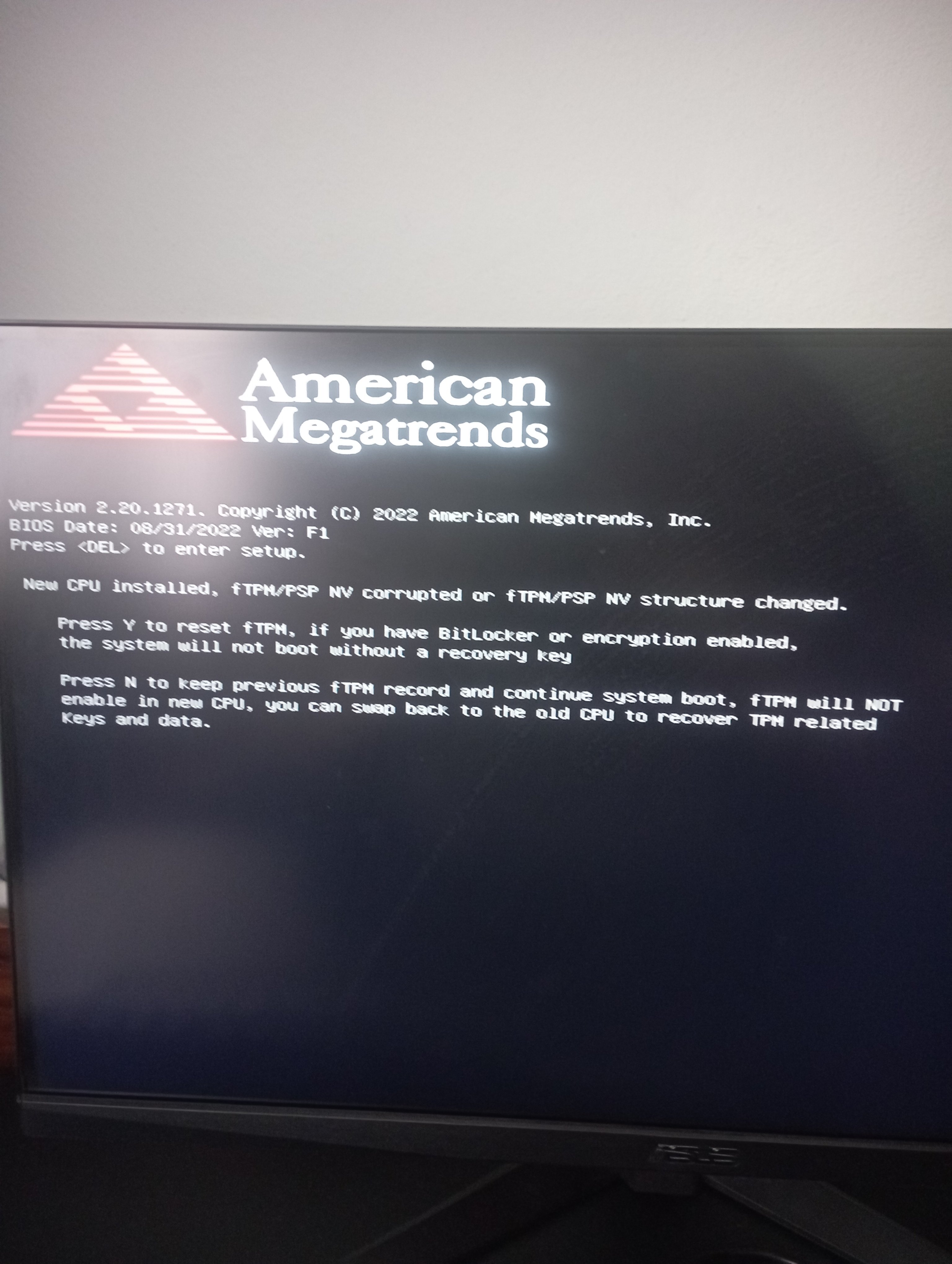 Aslında "Yeni işlemci algılandı, daha önceki ayarlarımı kullanmak istiyorsunuz yoksa yeni yar yapmak mı?" Tarzında bir bilgi var hata değil. İşlemciyi çıkarıp taktınız mı yada yeni işlemci? Eğer bunları yapmadan bu uyarı çıktıysa bir sıkıntı var demektir.
