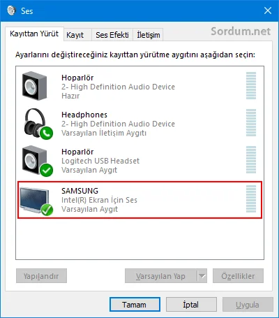Pcyi tvye bağlayınca ses gelmiyor ses düzeyi karıştrıcısındada gözükmüyor