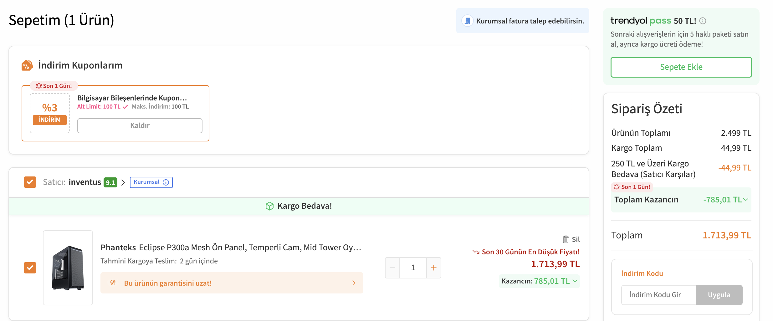 indirim kodu varsa daha da uyguna gelir ayrıca vade farksız 3 ay taksit seçeneği de mevcut