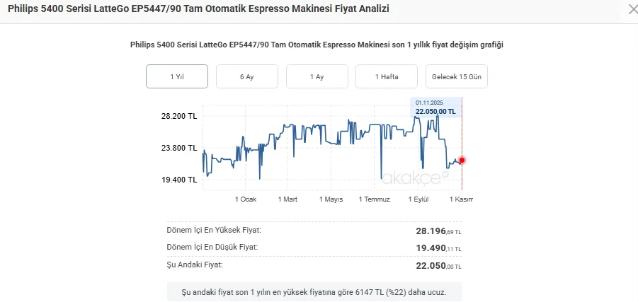 SEPETTE 19.799TL https://www.hepsiburada.com/philips-lattego-ep5447-90-tam-otomatik-espresso-makinesi-p-HBV00001AZ53L?magaza=Hepsiburada