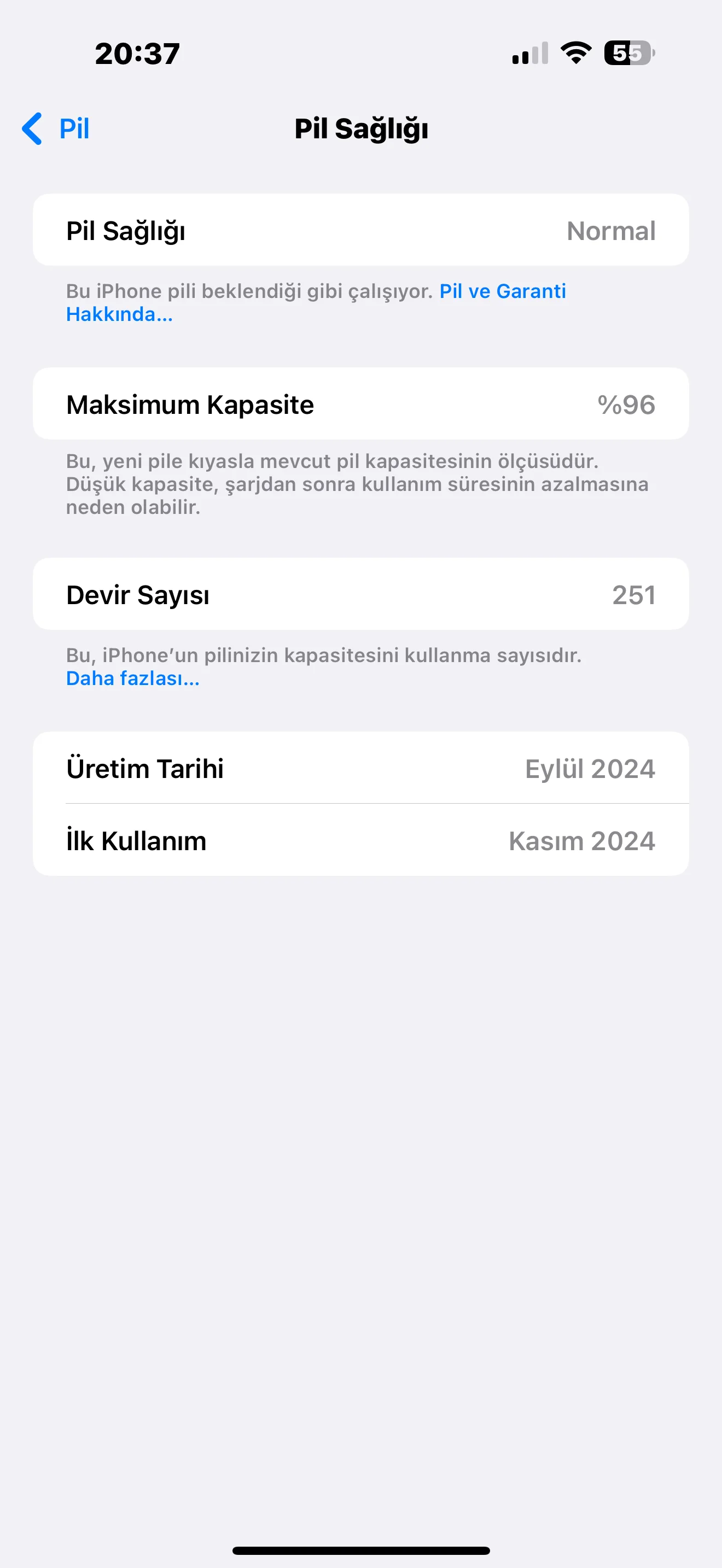garanti korumak istersen ben şu şekilde yapıyorum telefonu hiç 20 nin altına indirmemeye çalış güç tasaruf modunu açma bu kadar bazıları 20-80 arasında şarj edin diyor ama 100 olunca kafa daha rahat oluyor ben bu şekilde yapıyorum16 pro max ve pil sağlığı gördüğünüz gibi