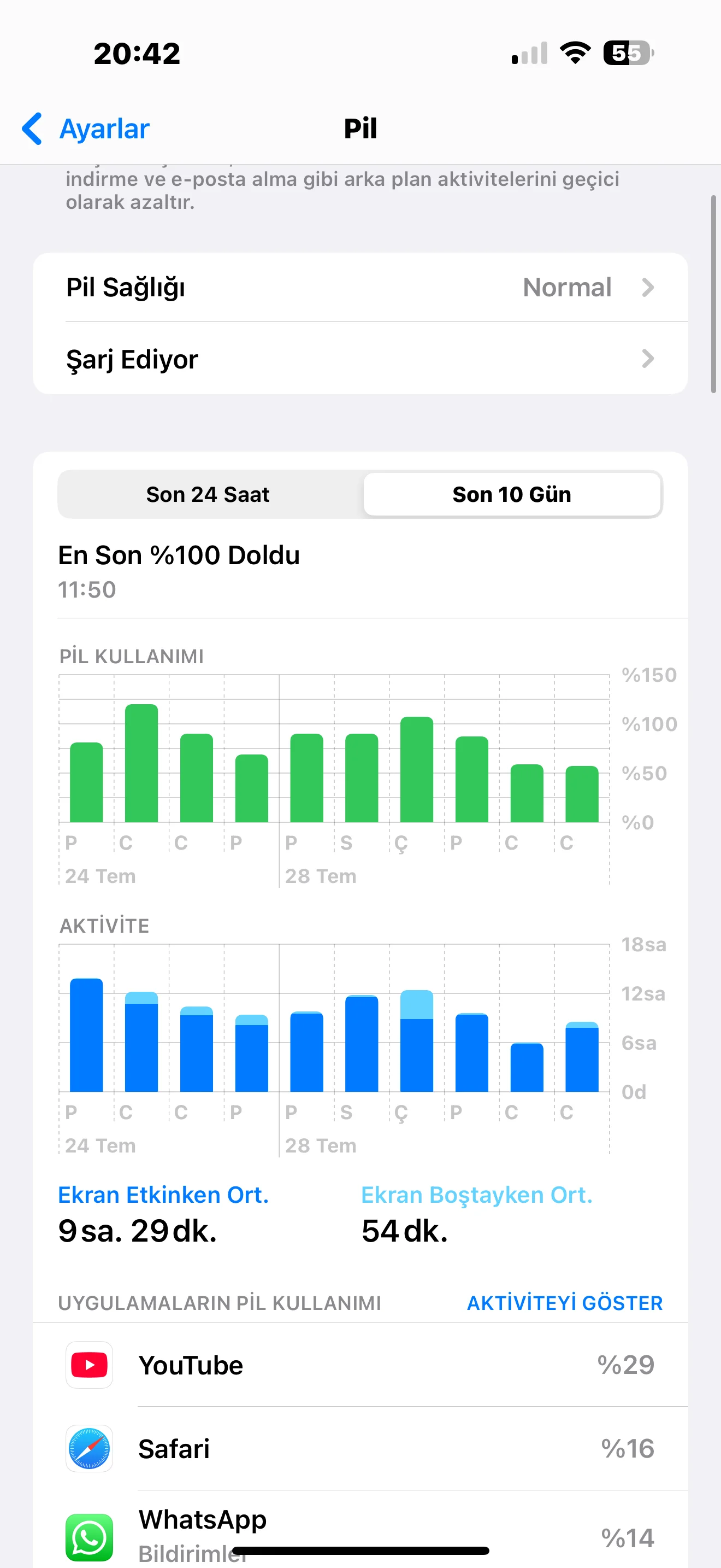 16 pro max baya iyiymiş 13 e göre.Normal. 1000 döngüde %80 garantisi veriliyor zaten. Bir de son 10 gün kısmını kullandığınız uygulamalar gözükecek şekilde atma şansınız var mı?