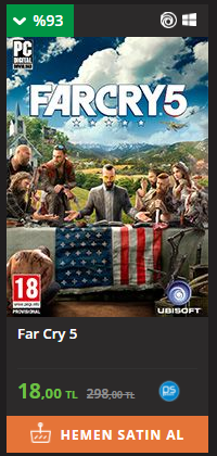 Alınmaz. Özellikle önceki Far Cry oyunlarından herhangi birini oynadıysanız uzak durun. Far Cry 3 oynayın daha iyi emin olun. Eski oyunların yanına bile yaklaşamayacak bir kalitesizlikte Far Cry 5. Hele hele 18TL ye hiç alınmaz. Hikayesi sıkıcı, oynanışı eski oyunlara göre daha kötü, açık dünyası sıkıcı, vuruş hissi olmayan bir oyun. Uzak durun benden söylemesi.