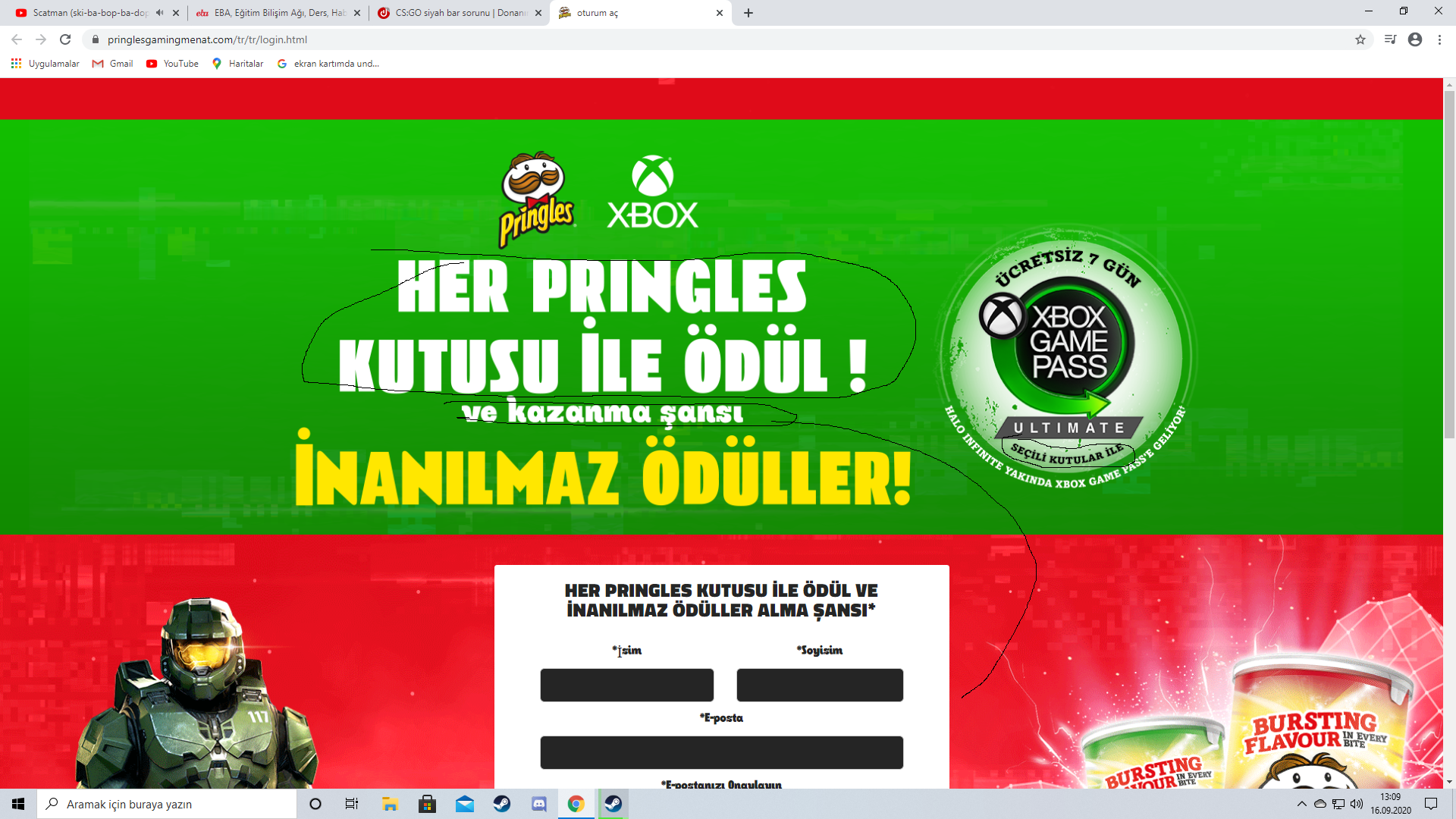 oaayeni görüyorum pringles alınca 1 haftalık gamepass geliyo diyolar https://www.pringlesgamingmenat.com/tr/tr/login.html