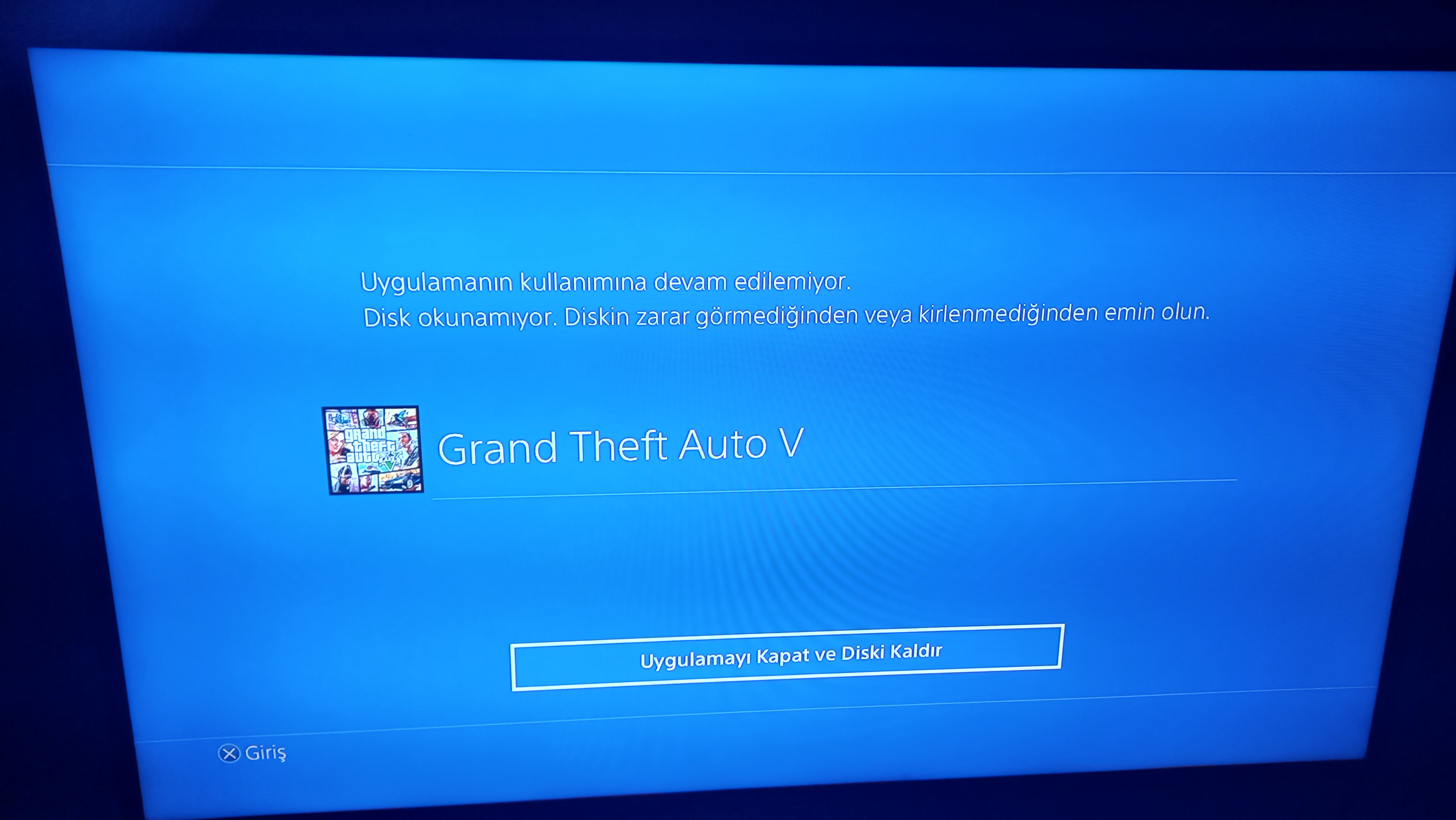 "Uygulama kullanımına devam edilemiyor. Disk okunmuyor. Diskin zarar görmediğinden veya kirlenmediğinden emin olun."