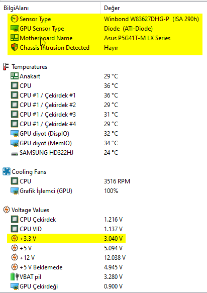 Elimde Xeon E5420 işlemci ve Asus P5G41t-M Lx anakart mevcut geçen gün Aida64 gibi programlar ile sensör bilgilerini kontrol ettim ve +3.3v kanalından gelen voltaj sabit 3.040 gibi değerlerde geziyor bazen 2.970 e düştüğü oluyor sizce normalmidir?