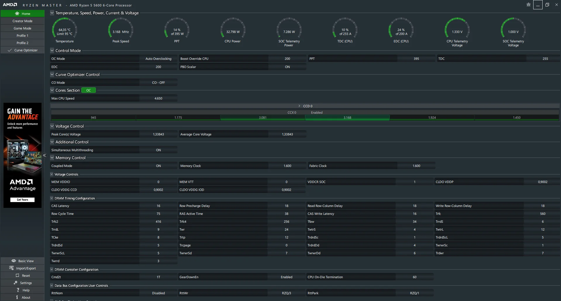 Ryzen5 5600 için ryzen master indirdim ve curve optimizer all core auto seçtim, oc mode da otodaydı. +100mhz verdi. Sonra +200 ayarlayıp tekrar optimize et dedim. Diğer hiçbir ayarı manuel olarak ellemedim. Yanlış yaptığım veya yapmam gereken farklı bir ayar var mı? Şu anda oyun performansı %10-15 arası arttı ve daha stabil oynanıyor oyunlarda drop yok.