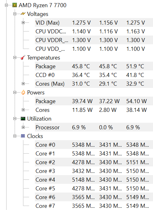 Merhaba. Yaklaşık 3 gün önce elime ulaşan Ryzen 7 7700 boşta 45 derece civarında çalışıyor. Kullandığım soğutucu "Thermalright Peerless Assassin 120 SE TL-C12C 6 x 6mm Isı Borulu 120mm". İşlemcim boşta 45 derecelerde çalışıyor. BIOS üzerinden fanı maksimumda çalıştırsam bile değer aynı. Aşağıda boşta ve Cinebench R23 testlerini de koyuyorum. Skor 17000 civarı çıktı. Sizce normal mi? Aynı zamanda Battlefield V'de de test yaptım. 65 civarı 70 dereceleri görmedi.