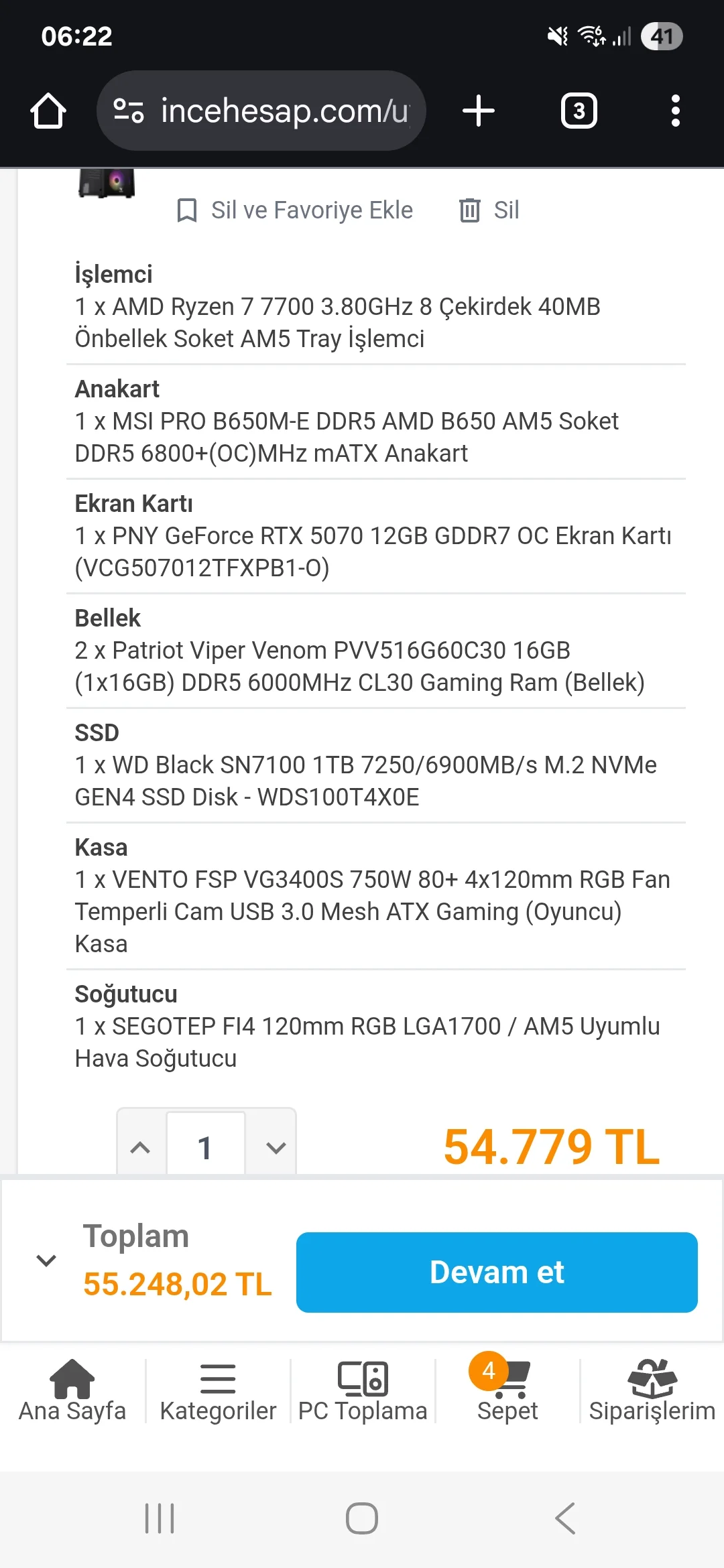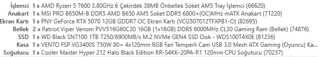 işlemciyi 7500f yapıp anakartı b850 seviyesine cekersen ilerde daha guzel guncellenır bılgın olsun . 7500f ile 7600 arasında performans aynı .Son hali böyle hocam