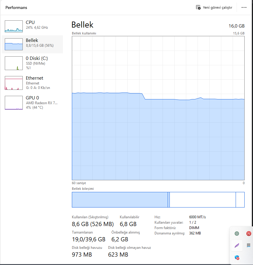 biostan ramlari ayarladım biosumda güncel ram 3000mhz gösteriyor burda 6000 birde kullanılabilir niye 7 GB