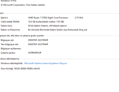 Arkadaşlar yeni pc aldım ama ramim 16 gb kullanımı 7.95 olarak gözüküyor yardım edermisiniz.