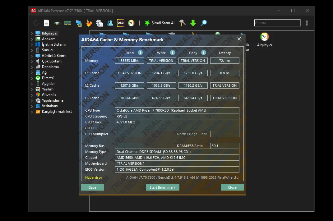 Benim ayarlar başka, ben profesyonel düzeyde çok uğraştım 6400 CL28 Fclk 2133 stabilim 57 ns bendeki değer. Pyprime sürem ise 7.7 snbu testlerde sizin latency kaç çıkıyor? 72 yüksek ve %1 fps droplara sebep oluyor mudur sizce