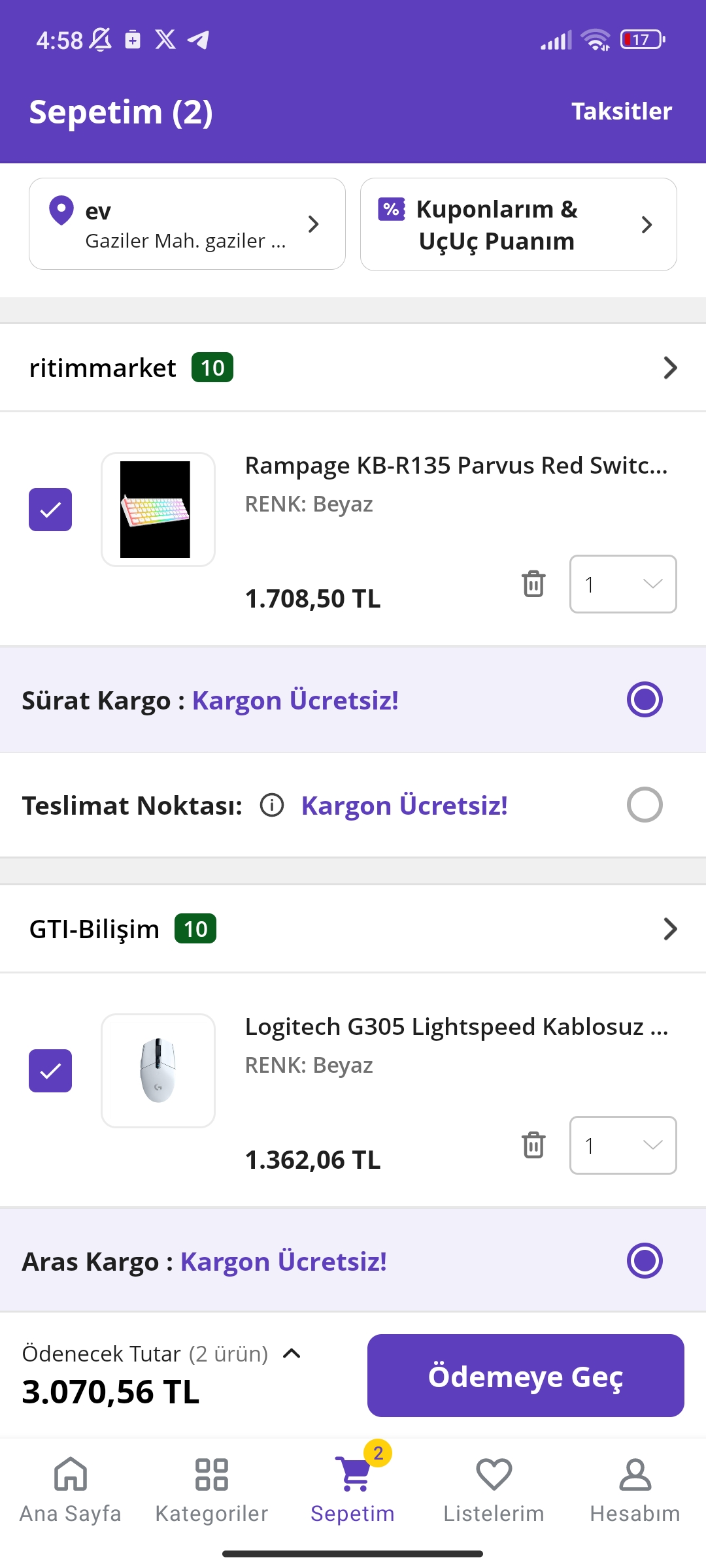 N11 de saat 11 ve 20.00 da kupon oluyor 200tl civarı iniyor.O şekilde daha uyguns alabilirsiniz.Beyler bu ikisini alcam kararsız kaldım yardım edebilcek varmı bütçe 3.5k