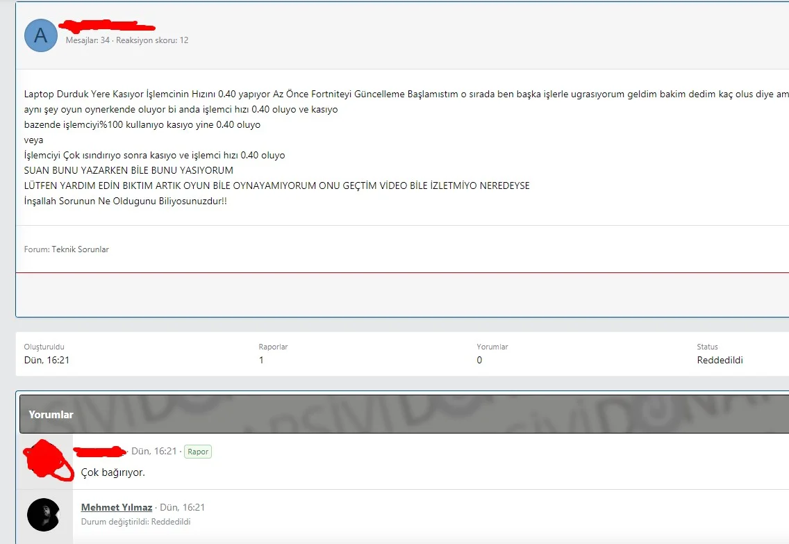 Raporun yersiz olduğunu nasıl anlarım diye soran arkadaşlara bir örnek bırakıyorum.