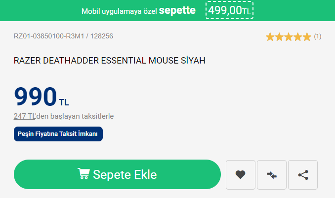 ❌İndirim Bitti! Razer Deathadder Essential 499₺