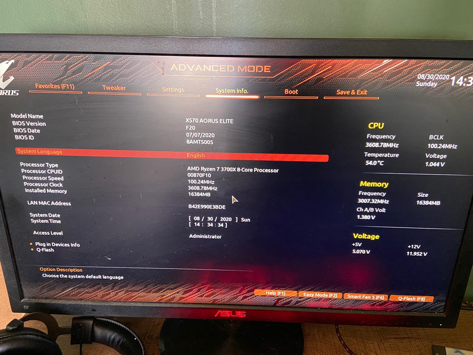 ⁂ Anakart : Gigabyte X570 Aorus Elite