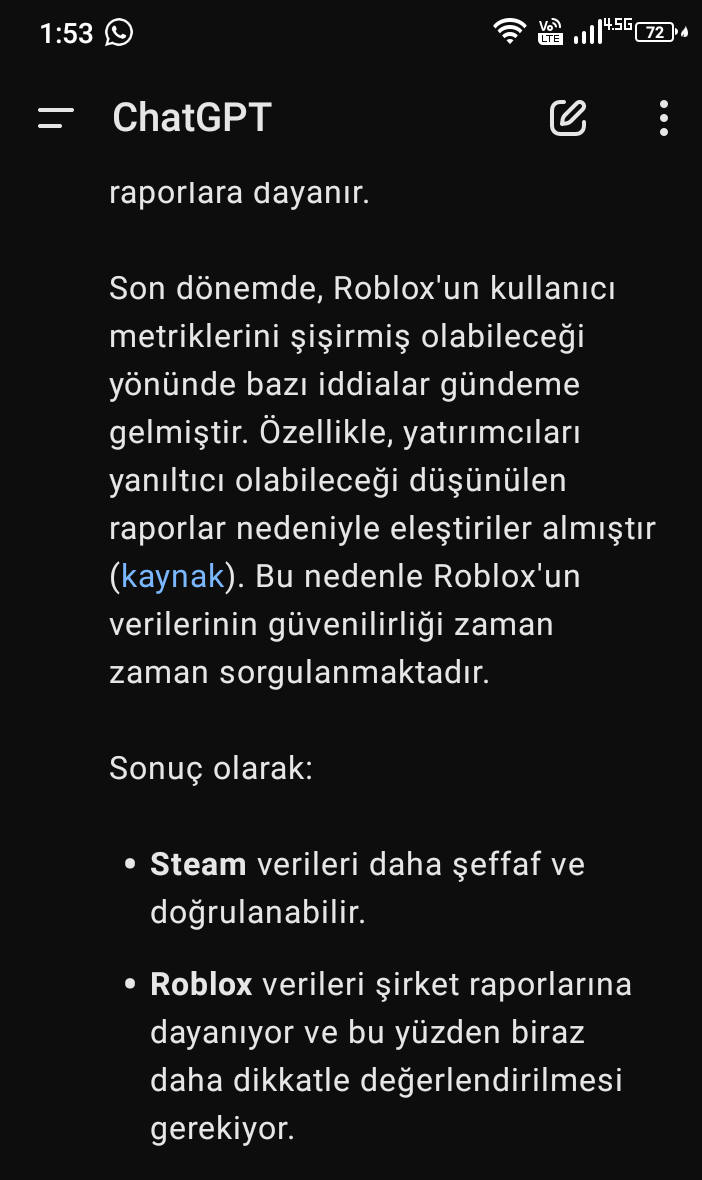 Aynen Knk Kesin dediğin Gibidir Bak şimdi ben sana anlatırdım ama Yok Boş konuşuyor nerden biluyon vs dersin malum Bizim millet kabullenmeyi bilmiyor Hem suçlu hem güclü hesabı neyse boş ver k8saca Yapay zekaya Senin için Verilerin dogruluğu ve şeffaflığını sordum bak bakalım O Ne dedi?