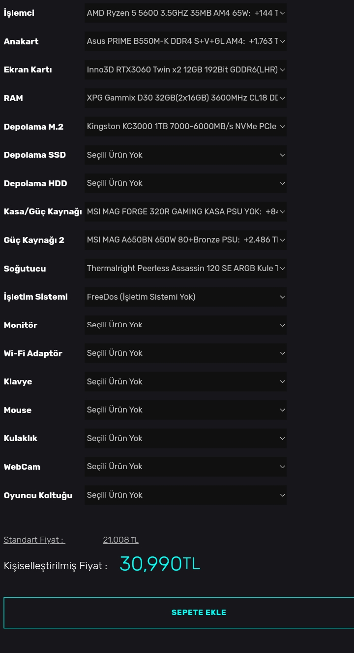 https://www.tebilon.com/amd-ryzen-7...i-ventus-3x-black-16gb-xpg-16gb-kioxia-500gb/ al mesela az daha para olsa rtx4060ti-16gb + ryzen5 7500f