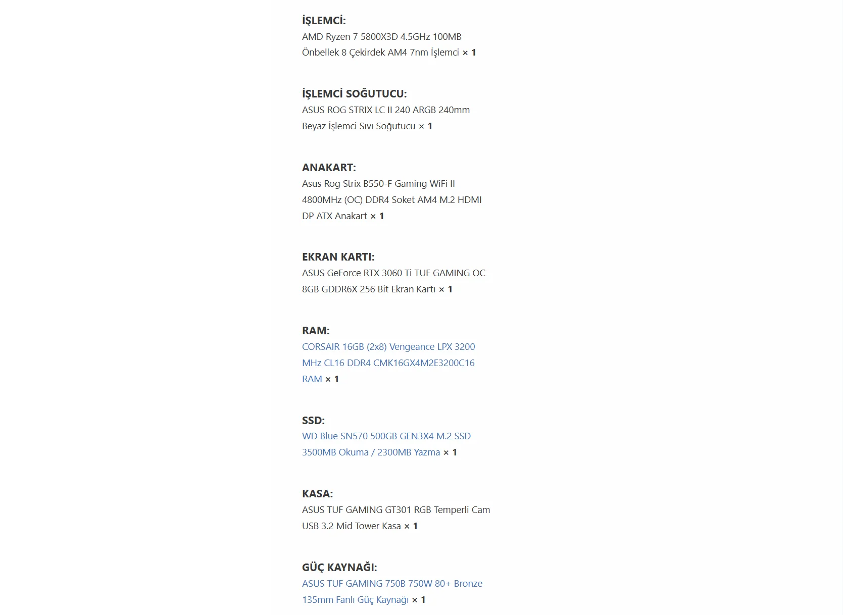 Sistemi 2023 senesinde 30.000 TL' ye toplamıştım. O zamanlar otomotiv sektöründe çalışıyordum. Aylık maaşım 33.000 TL idi. Yapıştırdım ASUS Rogları TUF ları. :) Şimdi işsiz kaldım. Kapattılar sanayiyi. Başka yerlerde maksimum verdikleri maaş 25.000 TL civarı. Ben de kabul etmiyorum az diye. İşsiz kaldım. Fakirleştik bir anda. Diyeceksin nasıl alacaksın? Bulacağım bir yolunu. Bu arada yayın ve video edit işleri de yapacağım bilgisayarda onu söylemeyi unuttum. Sağolasın tavsiye için. Sen böyle konuşunca 4080 super alasım geldi 5070 Ti sevdasından vazgeçip. :D Bu arada o takıntım yine var. Palit, Gainward gördüm mü kaşınmaya başlıyorum. ASUS TUF GAMING görmezsem rahat edemiyorum. :)