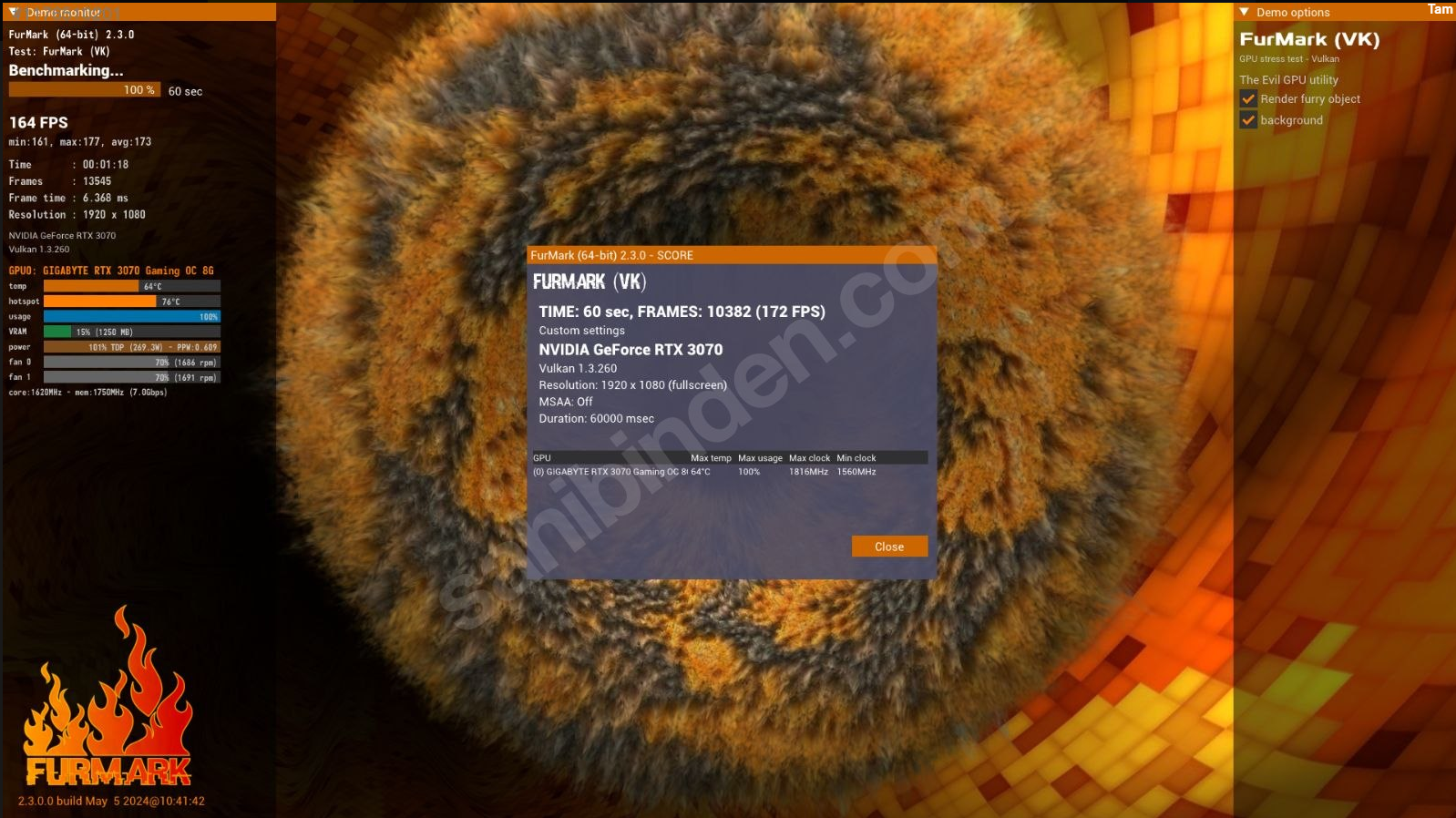 aa hocam sizde de mi 3070 var, hocam rica etsem furmark 2.3.0.0 ile 1920x1080p - msaa off test yapabilir misiniz