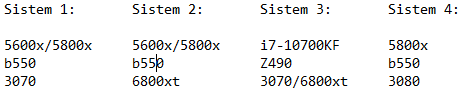 Verilen yanıtları dikkate alarak 4 farklı sistem oluşturdum. İşlemci ve Anakart konusunda %99 emin oldum. Fakat ekran kartı konusunda hala tam olarak emin değilim AMD beni performansıyla çekerken Nvidia yazılım konusunda beni çekiyor. Resimdeki sistemleri yorumlayabilir misiniz? 1 ve 2. sistemler en mantıklı olanlar gibi geldi. Alternatif olarak bir intel sistem ve 6800xt ye rakip olması açısından 3080 ekledim.6800xt 3080 rakibi. Bu söz yeter.