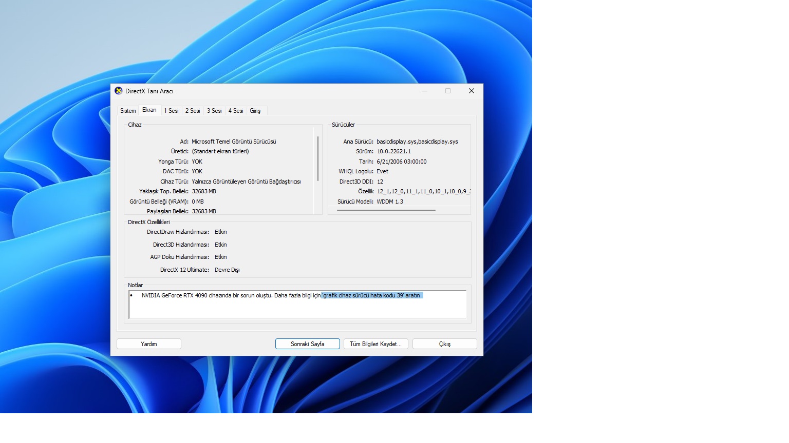 Adam görüntü ayarlarında gözükmüyor diyor driver yüklemezsen görüntü ayarlarında gözükmez bende driverların hatalı yüklendiğini düşünüp ddu ile driverları baştan yüklemesini önerdim