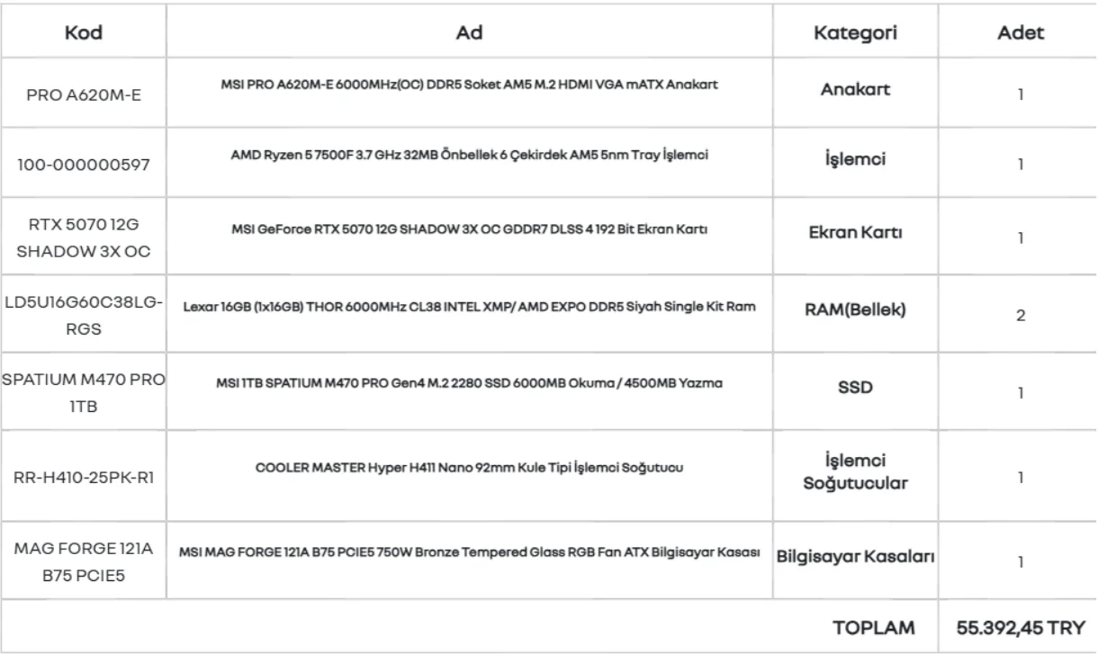 fiyat iyi 5070 sistem ama bu anakart ile ben almazdım 55k verip