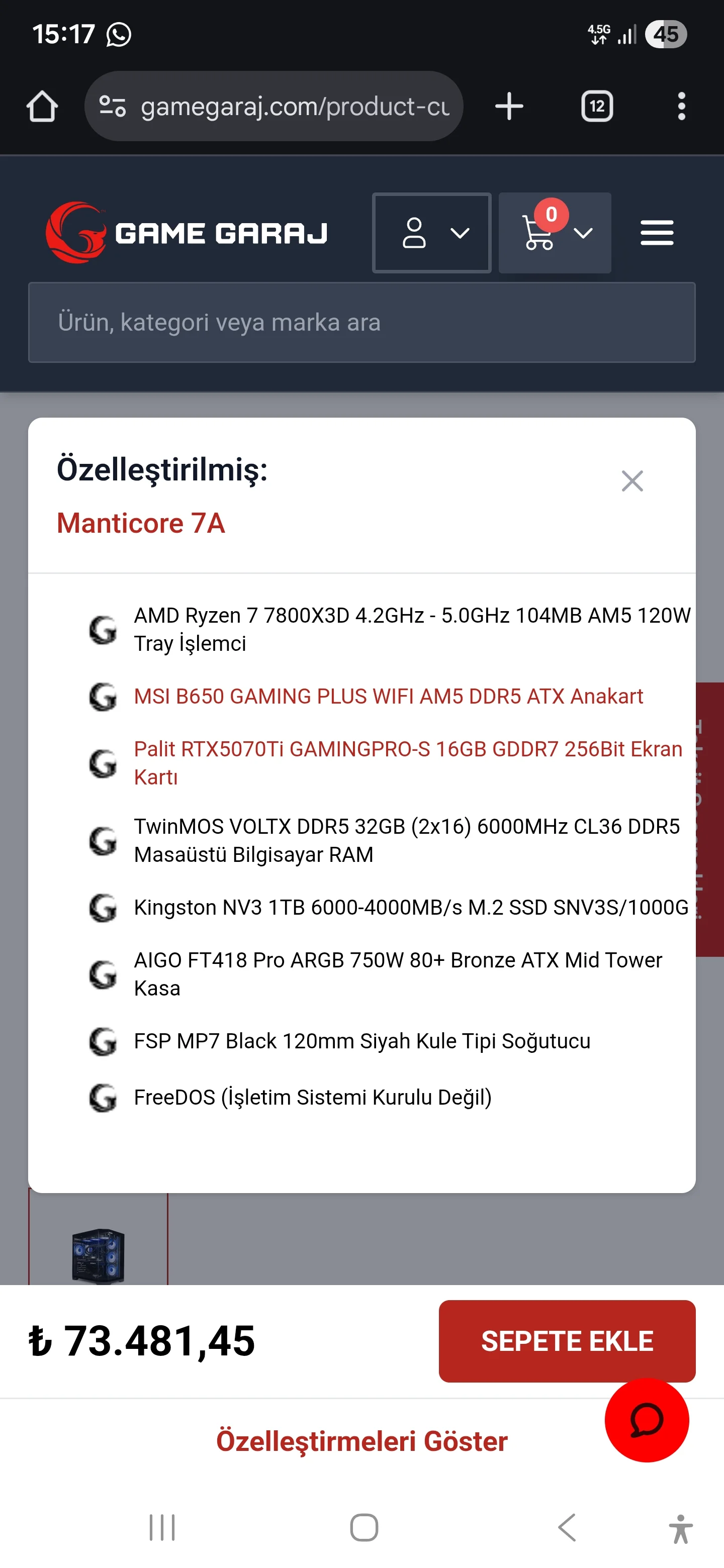Bu 5070ti olan model biraz özelleştirme yapmıştım