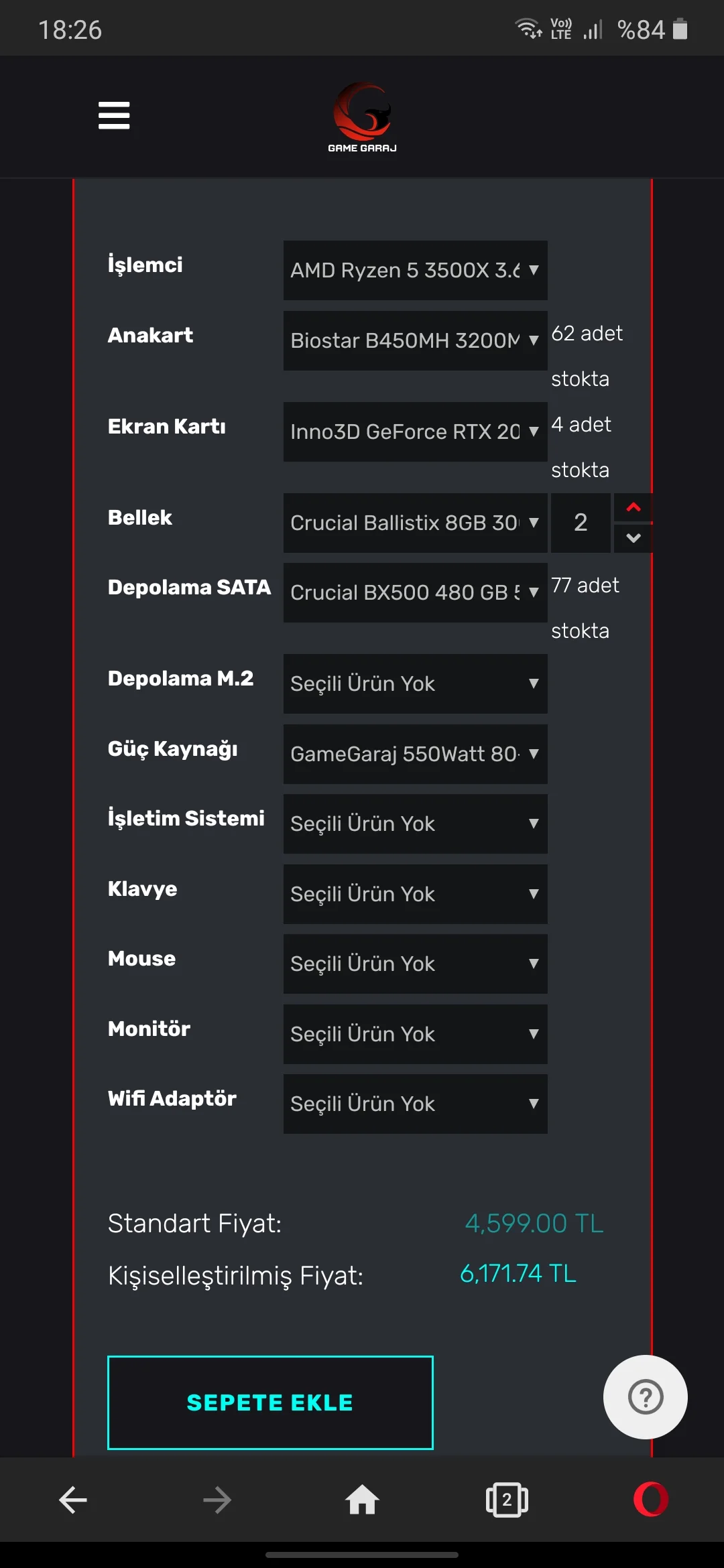 Şu sistemi 6.000 TL diyerek başkası atsa,1600 af yerine islemciyi yukseltip alirdim
