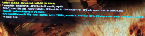 Bugün 2.el rx 570 4gb aldım ve furmark testlerini yaptım 1080p 8x msaa 15-17 fps veriyor