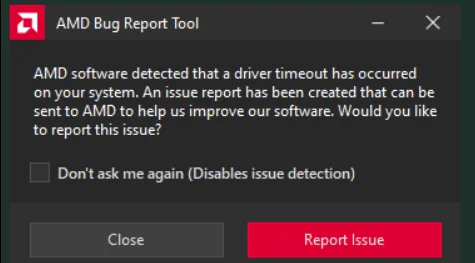 Fanlar %100’e çıkıyor, görüntü gidiyor, bazen siyah ekran, bazen masaüstüne atıyor ve ekranda ekteki uyarı çıkıyor ve Adrenalin ayarları sıfırlanıyor.