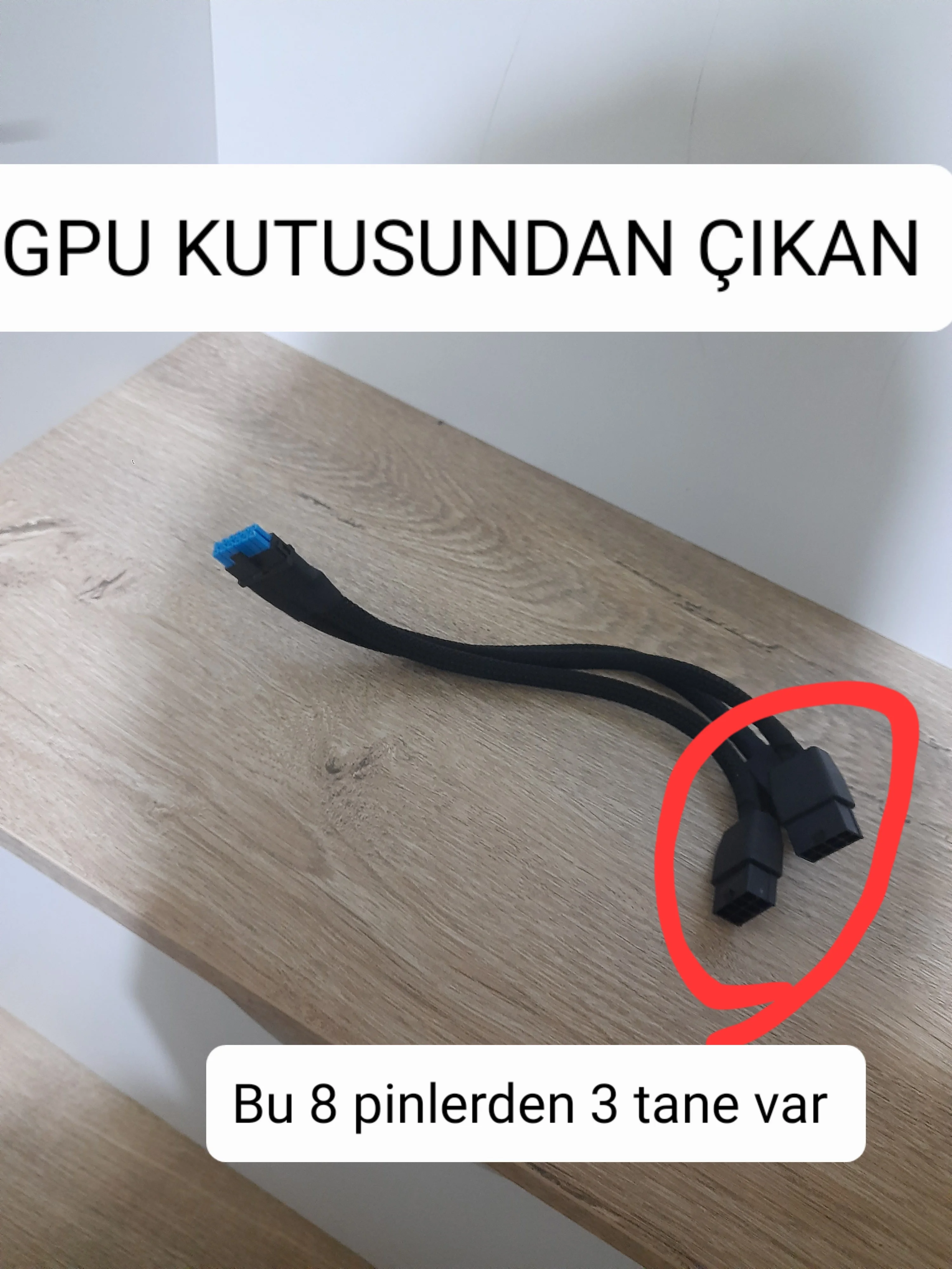 Ekran kartı kutusundan çıkanın bir ucu 12 pin, diğer ucu 3 tane 8 pin