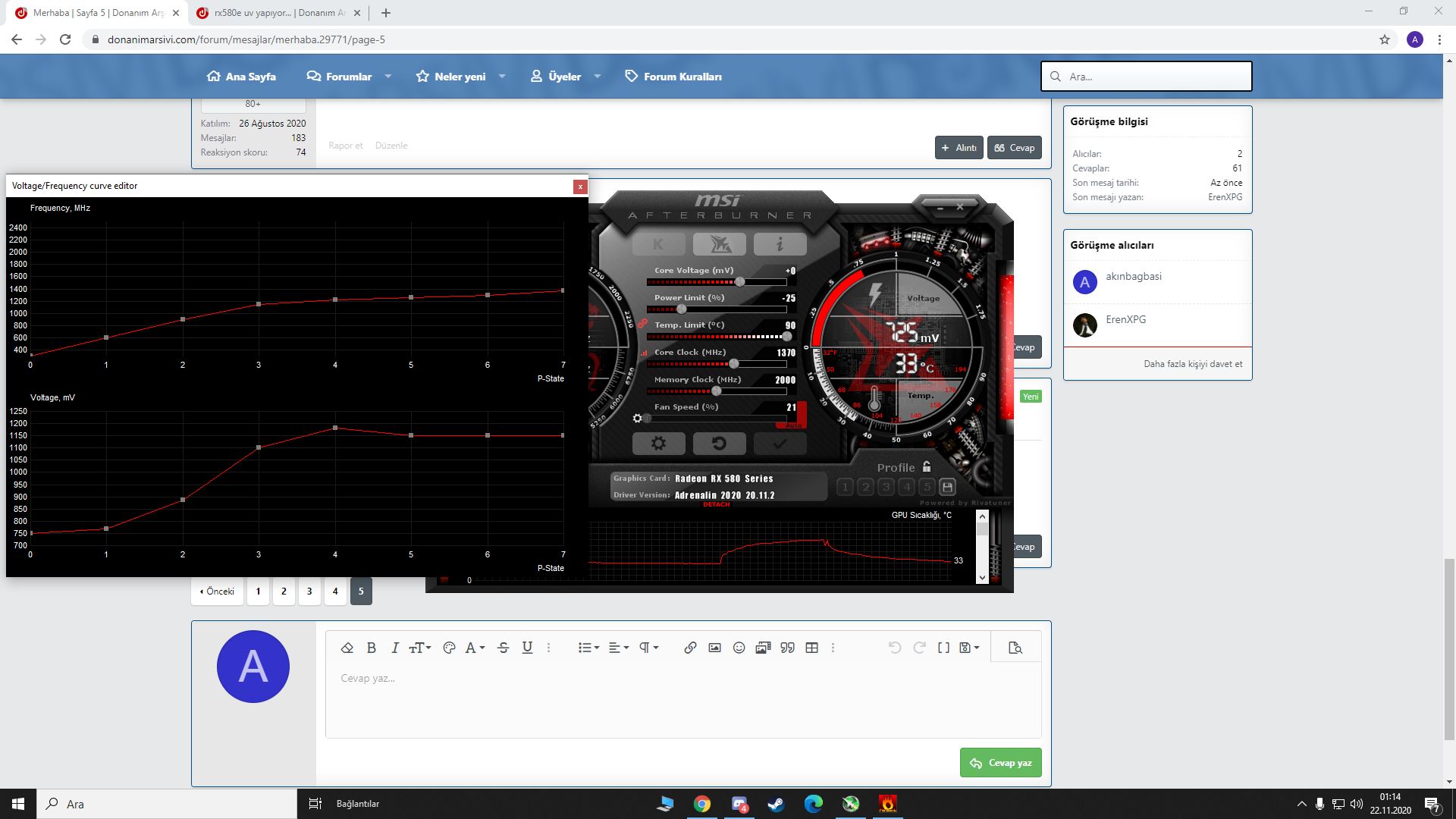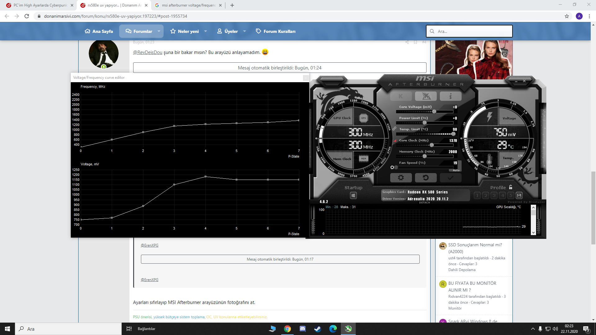 Ayarları sıfırlayıp MSI Afterburner arayüzünün fotoğrafını at.