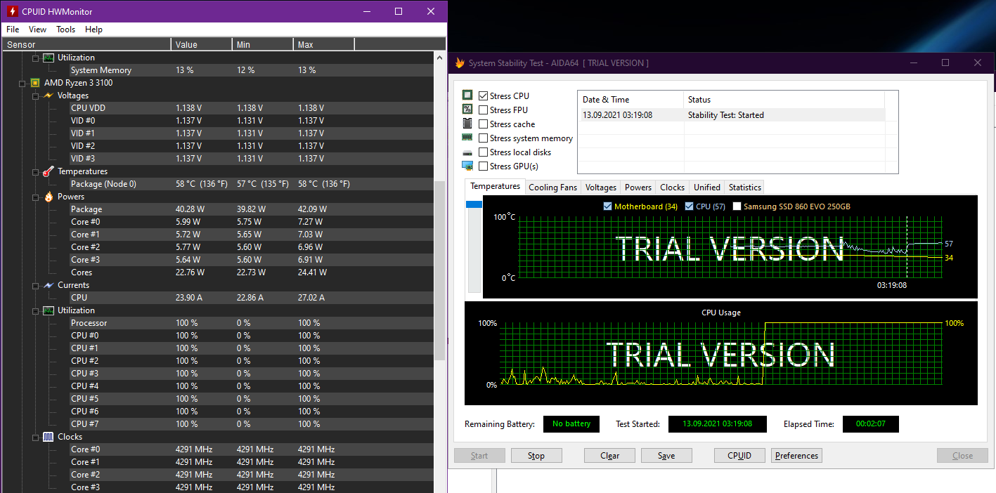 Şimdi aida64 ile CPU işaretli yaptığım 2 dakikalık bir test sonucunu paylaşayım;