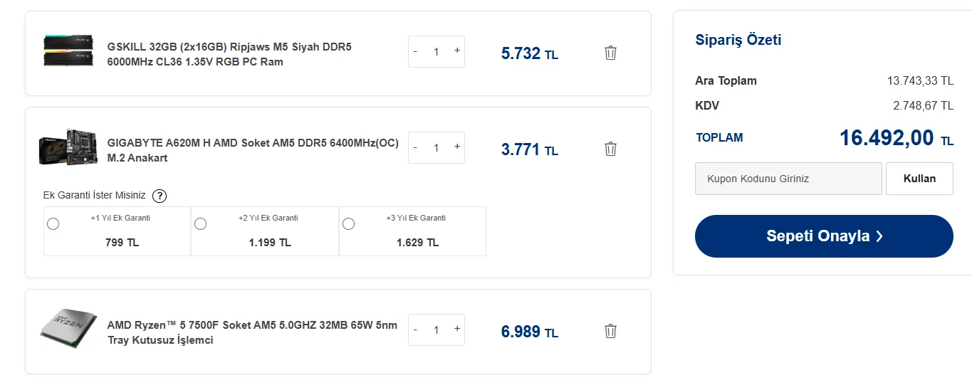 sadece fortnıte oynuyorum demıssın zaten 16k o sepete asla verılmez kartında 5600xt zaten cok ddr5 ıstıyorsan suankı sıstemını satıp ddr5 sıstem al ama sana tavsıye sadece 5600 al gecsnowman t 6 var