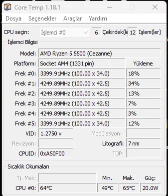 merakimdan soruyorum o taş ne ise yariyor@Emir Aydın @CrancyLynx @ANtiQ08 Hocam taktım an itibariyle boşta 49 dereceyi gördü ss alırken 65 dereceye çıktı anlık olarak şuan 55 derecelerde geziyor yazarken 60 oldu gerçi