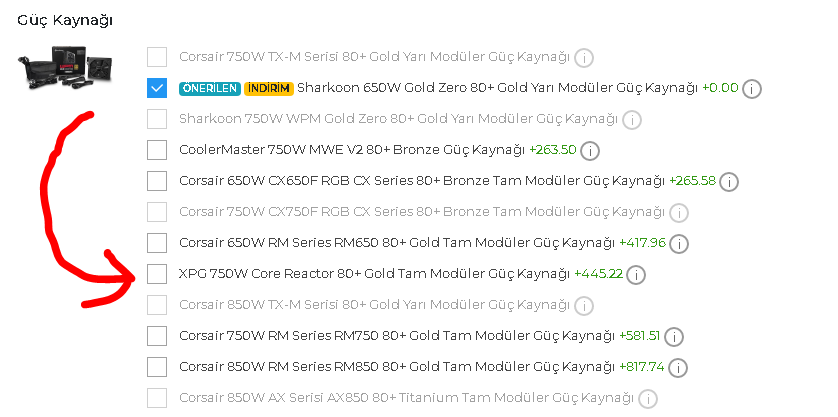 ve psu ise bunu seçip işaretlediğim fiyatı 13408 TL ye getirebilirsiniz diyer hiçbir bileşeni deişmenize gerek yok monitörünüze böylece fazladan para eklemek zorunda kalmassınız fazla. Alıntıyı görüntüle