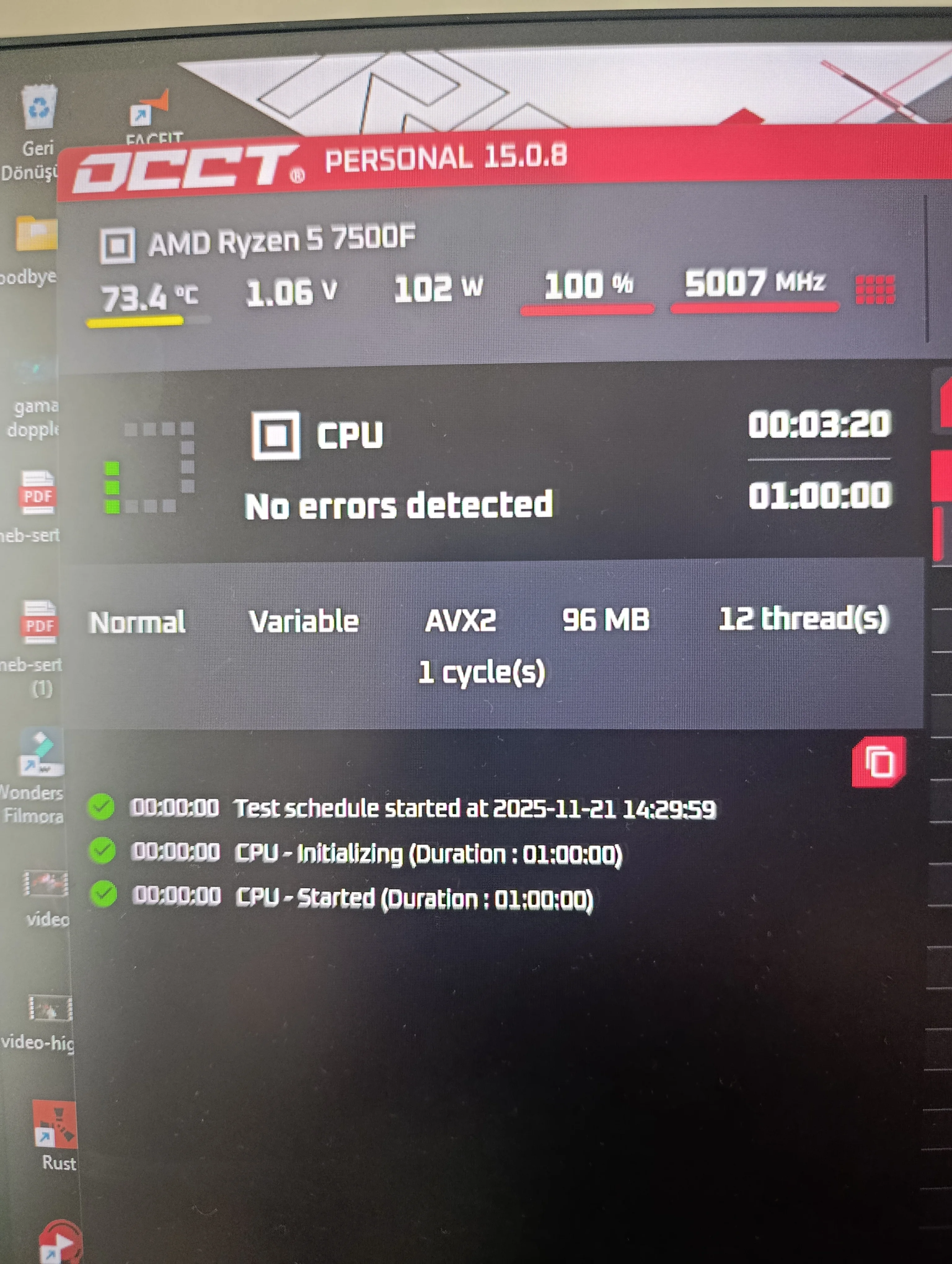 aslında buda ıdare eder sıcaklıklar ama belkı takarken bır yanlıslık oldu ya da macun gercekten 14mkw degılArkadaşlar 300W Tdp desteği olan cooler master atmos 360mm ile kullanıyorum 6 core 12 thread occt testine soktum sonuçlar böyle daha alt olan 65 derece sıcaklıklar niye göremiyorum thermal macunum 14 mk/W cyrofuze oda sıcaklığı 26.5 derece
