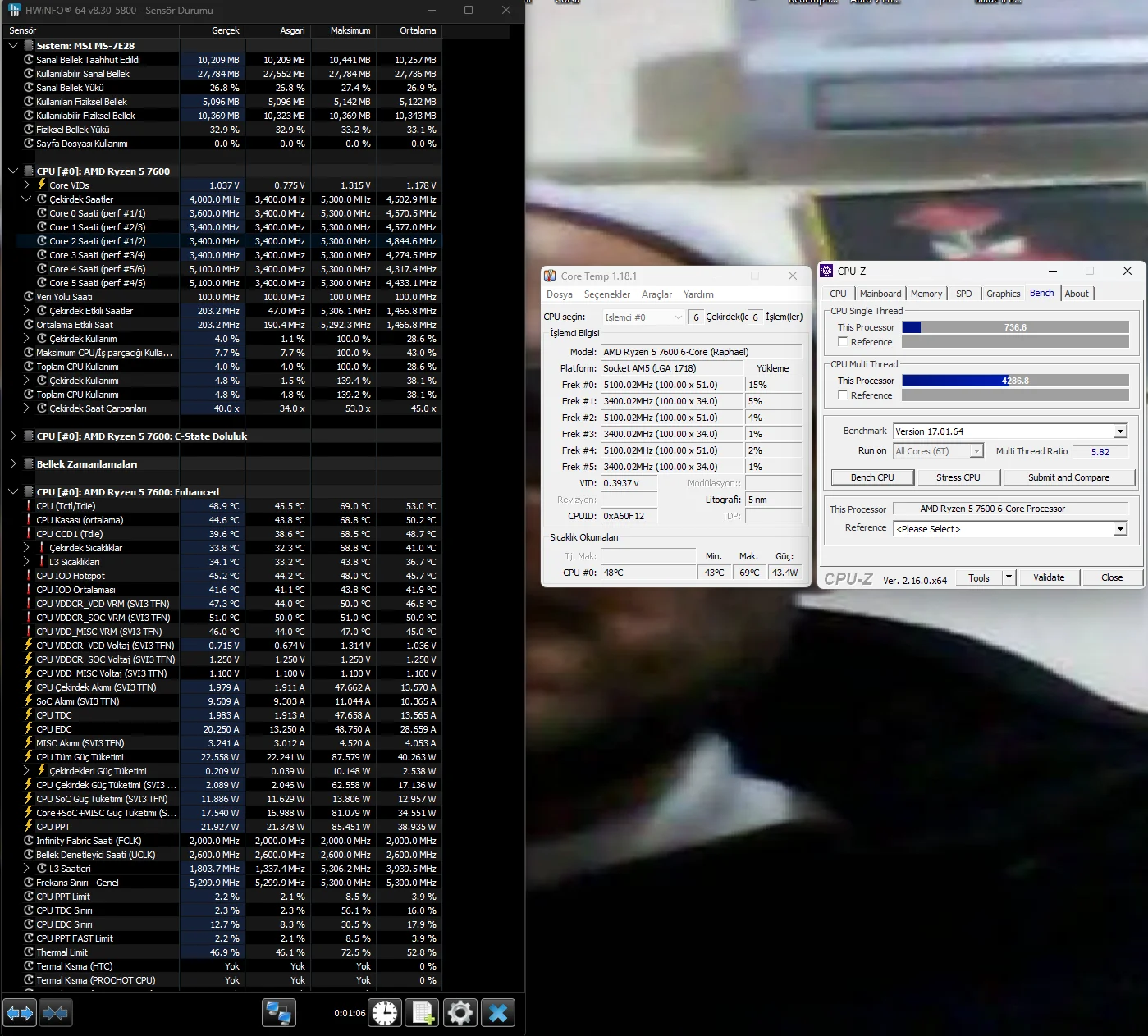 Ryzen 5 7600 işlemcime bu videodaki PBO ayarlarını uyguladım. Ancak ilginç bir durumla karşılaştım: videodaki kişinin stok (OC’siz) hali bile, benim OC yapılmış işlemcimden yaklaşık %30 daha yüksek performans veriyor. Ne yaptıysam bu farkı kapatamadım. Single-core skorlar biraz yakın olsa da, multi-core performansta ciddi bir fark oluşuyor.