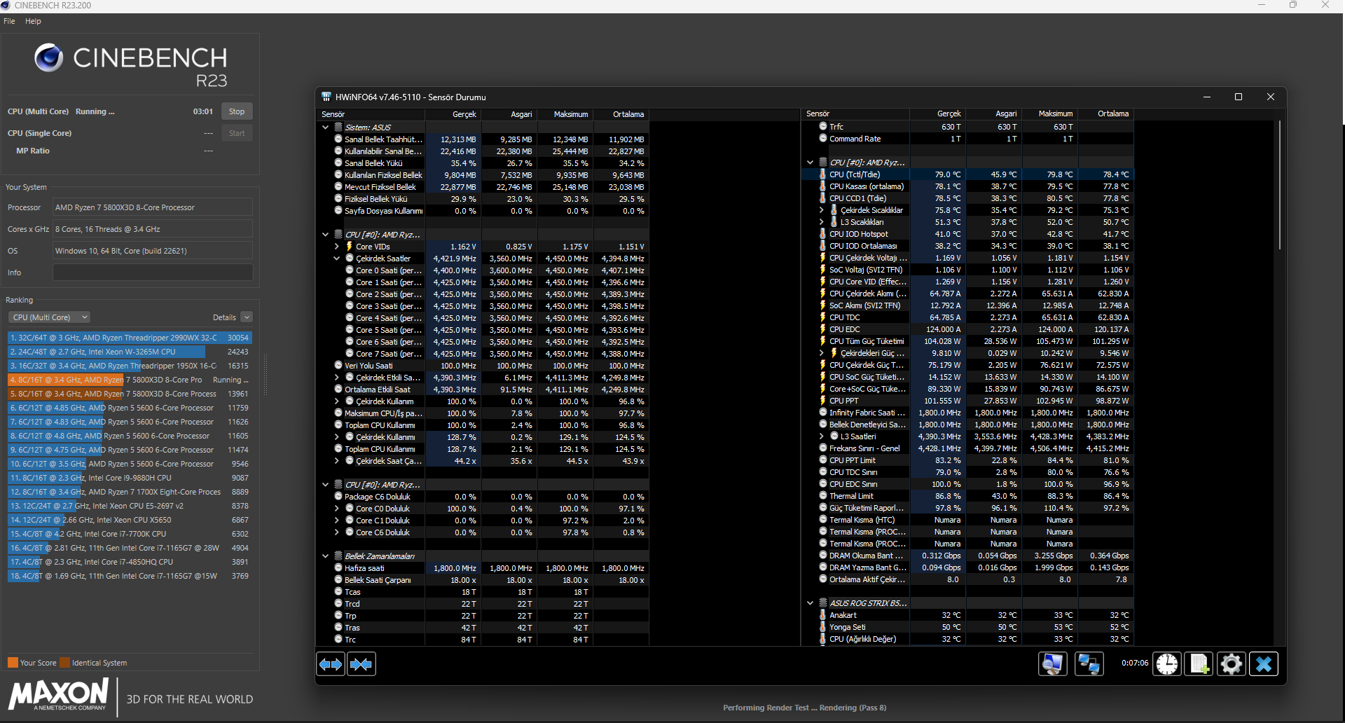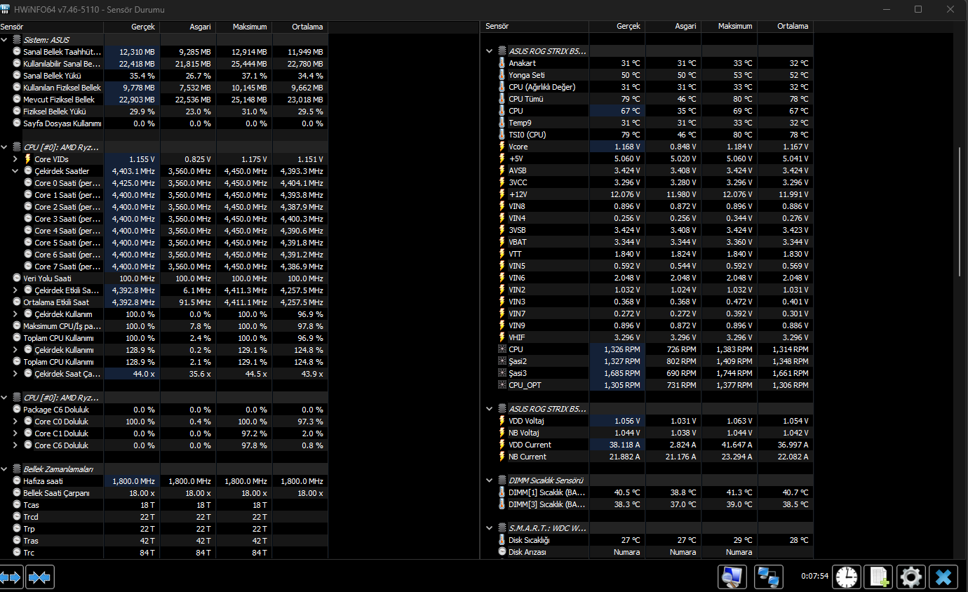 ASUS anakart kullandıgım için digi+VRM ayarları da yaptım. BIOS üzerinden PBO ayarları ve ufak bir offset voltaj düşürdüm. İlk cinc skorumda resimde mevut. İşlemci 92 derece gördü ilk testlerimde şu anda 80 üstü çıkmıyor 120W çekerken şimdi 100 110 arası çekiyor. Bu ayarlar benim işime açıkçası yaradı bir performans düşüşü gözlemlemedim başka kullanan. Arkadaşlar varsa onlarında işine yarayabilir diye atayim dedim. Sizlerin de fikirlerini almak isterim şimdiden teşekkürler.