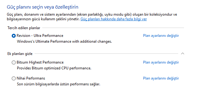 Kullanmadığınız her hangi bir planın ayarını değiştire tıklayıp, en fazla işlemci güç durumunu %70'e getirin, çözülecektir, daha sonra yeni bir plan oluştururuz tabi isterseniz.Alıntıyı görüntüle