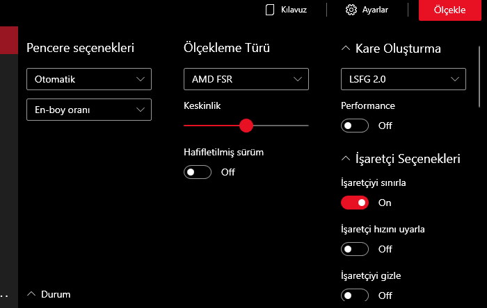 Ölçekle kısmından kısayolu CTRL+ALT+A yapın. oyunu açın ve penceresiz moda getirin (tam ekrandan çıkarın) ve CTRL+ALT+A yaparak aktif edin.