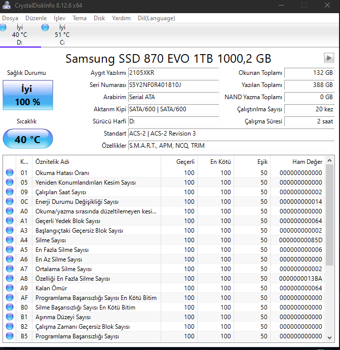 2- Normalden fazla SMART değerleri var.