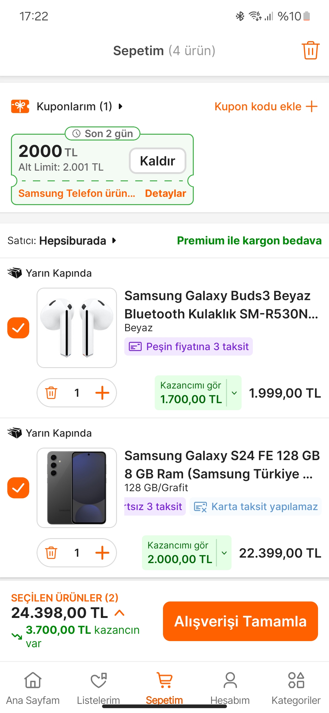 Sepette hem 2000tl kupon var hem de buds3 2000tl ye geliyor. Almayı düşünenler bence kaçırmasın